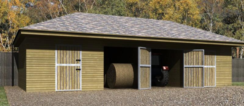 This Straight Stable design has two large stable rooms, and another two well proportioned rooms for storage. Useful for storing hay, and small tractor vehicles.