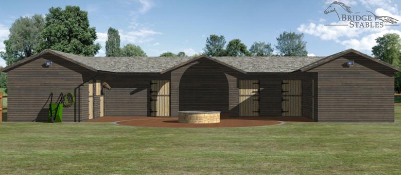 This U shaped Stable includes four good sized stable blocks, together with an enlarged tack room for storage. The large archway provides good coverage for the grooming area, as well as an attractive frontage to the couryard.