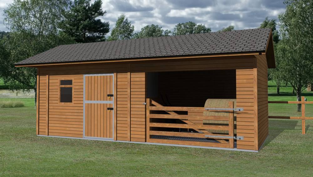 This mobile field shelter provides a substantially sized gated grazing/storage area, together with a secure storage room. Equally, the storage room can be built with a larger entrance providing a basic mobile stabling facility.
