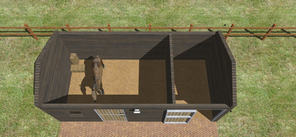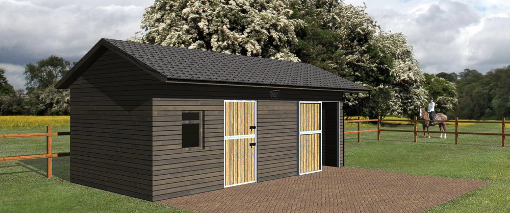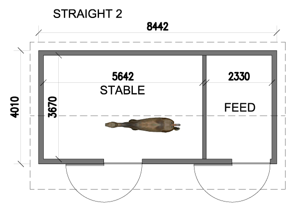 This smaller Straight Stable design features one enlarged stable room, with feed room.