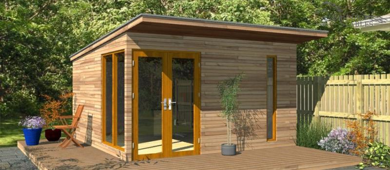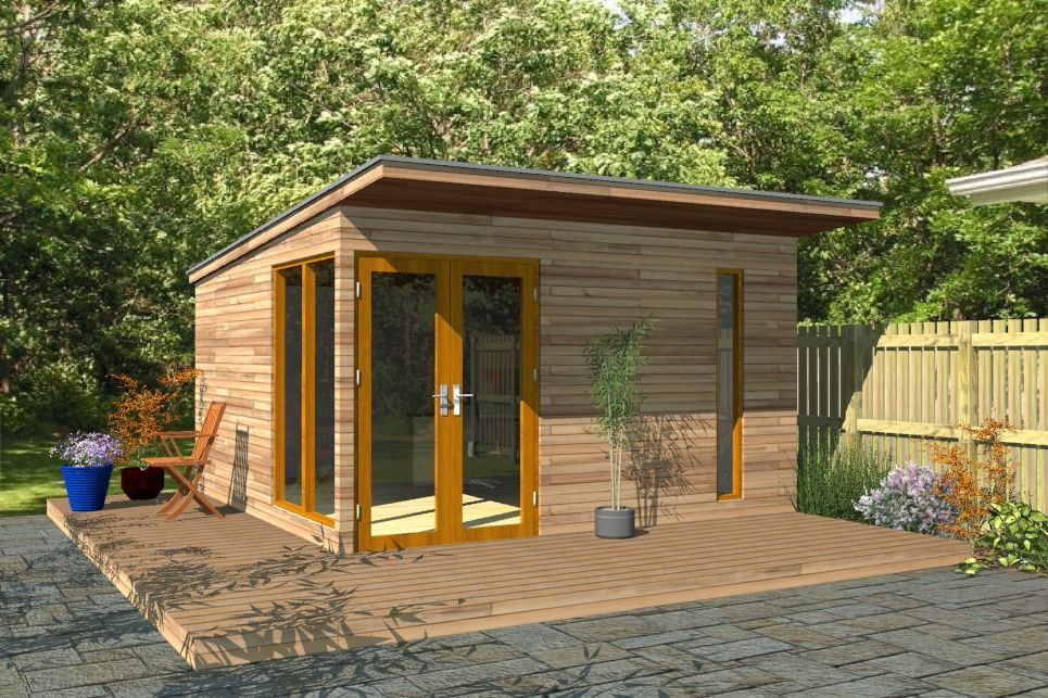 Clad in western red cedar with a choice of dark grey aluminium, dark grey upvc or woodgrain upvc double glazed windows and doors. The roof is a high spec composite powder coated metal skin panel system with a highly insulated core.