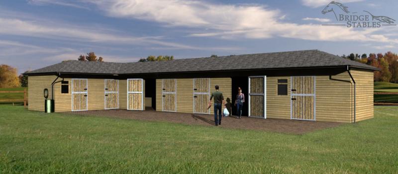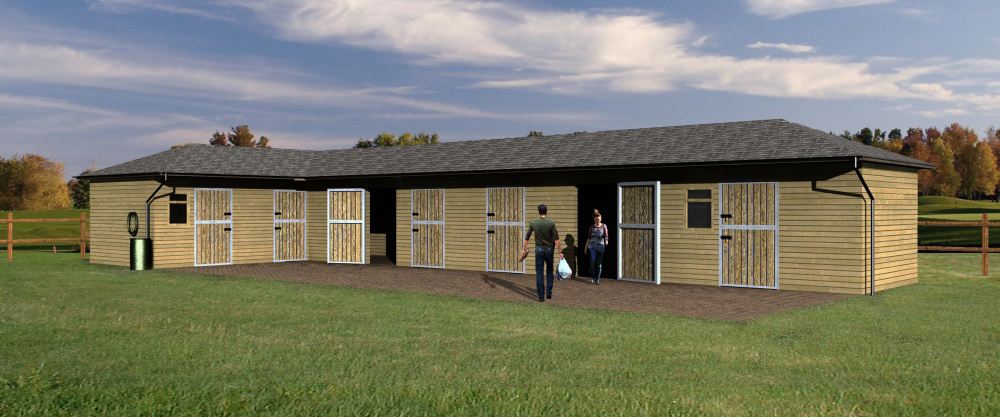 This large elongated L Shaped Stable features five equally sized stable rooms, and an enlarged tack room.